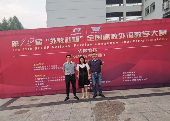 6月26日至27日,第十二届 “外教社杯”全国高校外语教学大赛安徽赛区复赛和决赛在安徽财经大学举行。必赢bwin官网登录入口教师王毅聪、陈铭代表必赢官网参加比赛,副院长洪常春带队并进行指导。经过激烈角逐,王毅聪荣获商务英语专业组二等奖,陈铭荣获英语专业组三等奖。