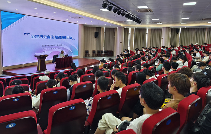 报告会上,张小明从“党的历史自信从何而来”“如何理解百年历程中党的历史主动精神”“怎样理解中华民族伟大复兴进入不可逆转的历史进程”等三个方面对党的光辉历程进行了深刻解读。他从中华民族遭遇到文明难以赓续的深重危机,到党领导人民不懈奋斗、不断进取,成功开辟了实现中华民族伟大复兴的正确道路,再到中华民族向世界展现的是一派欣欣向荣的气象,巍然屹立于世界东方进行了深入阐述。他指出,如今中国人民更加自信、自立、自强,焕发出前所未有的历史主动精神、历史创造精神,正在信心百倍书写着新时代中国发展的伟大历史。张小明还结合党的理论知识和同学们的日常生活,娓娓道来,他要求同学们要牢记空谈误国、实干兴邦的道理,要树立不负人民的家国情怀、追求崇高的思想境界、增强过硬的担当本领;要永远以党的旗帜为旗帜,以党的方向为方向,以党的意志为意志,赓续党的红色血脉,弘扬党的优良传统,在斗争中经风雨、见世面、壮筋骨、长才干;要坚定不移听党话、跟党走,怀抱梦想又脚踏实地,敢想敢为又善作善成,立志做有理想、敢担当、能吃苦、肯奋斗的新时代好青年。