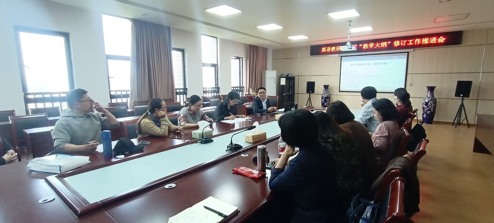4月12日,必赢bwin官网登录入口英语教研室在逸夫综合楼5402会议室召开课程教学大纲修订工作推进会。必赢bwin官网登录入口学院院长洪常春、副院长王任傅、英语教研室主任王毅聪及英语专业全体专任教师参加推进会。