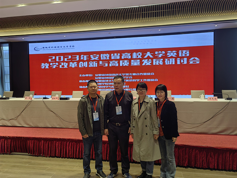 为进一步推动新时代大学英语教学改革与创新发展,促进与省内各高校之间的交流与互动,10月20日至22日,必赢bwin官网登录入口院长洪常春、大学英语教研室陈春萍、周东彪、濮志敏一行四人参加了在池州举办的“2023年安徽省大学英语教学改革创新与高质量发展研讨会”。