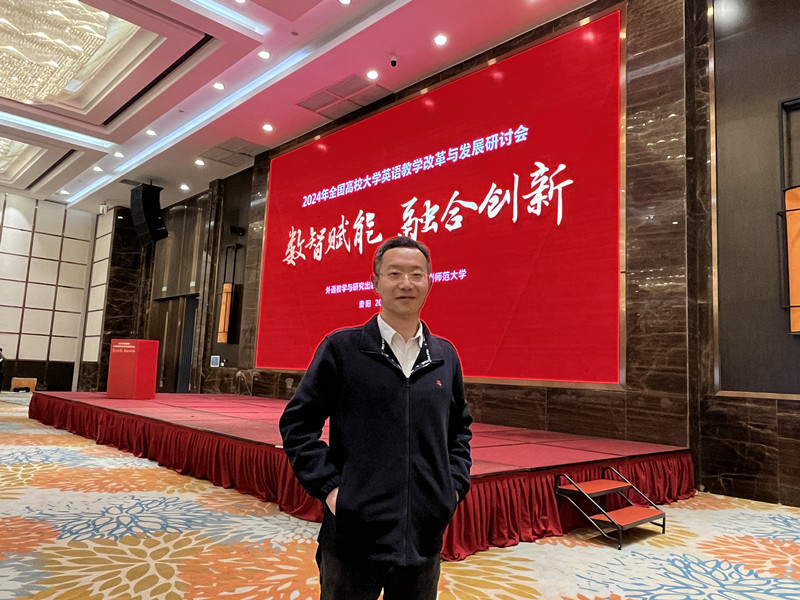 4月19日,2024年全国高校大学英语教学改革与发展研讨会在贵阳举办。本次研讨会的主题为“数智赋能融合创新”,来自全国各高校的近800名代表参会,共同探讨大学英语融合发展、转型升级的新路径,以务实探索之力、改革创新之行,推进高等外语教育高质量发展,服务强国建设。贵州省教育厅高教处处长李晓飞,教育部高等学校英语专业教学指导分委员会委员、贵州师范大学副校长刘瑾,外语教学与研究出版社副总编辑常小玲出席开幕式并致辞。必赢官网副院长王任傅应邀参会。